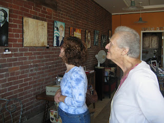 I went to the studio a little early to get the studio set for the last concert in our courtyard and my lunch date with Dalale and Susan...ala carte by Miss Dalale with wonderful sandwiches that delight the taste buds with their freshness on a whole wheat breads, baby carrots, fresh grapes and tiny sweet cupcakes to once again celebrate my birthday! I am one spoiled artist but oh what fun! We went out to get a free Velvet ice cream sandwich and listen to the music and visit with our patrons of every generation represented. I was so thrilled to see my dear friend's son and wife and his sister...Jon is home for a very short stay to hold his new son Jack. I pray every night for Jon's safety... he is stationed in Afghanistan in Kabul... a hot bed for such civil unrest and on the evening news. My gift of friendship encircles my days activities and energizes me soul to continue on. God bless our young soldiers who are are some one's precious son or daughter.